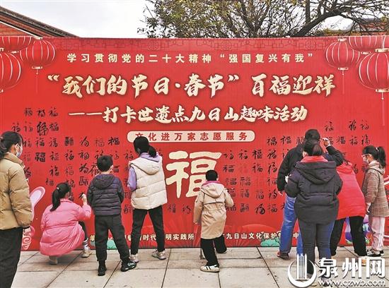 游客在丰州镇九日山景区参与“世遗描百福”活动 (王晶 摄)