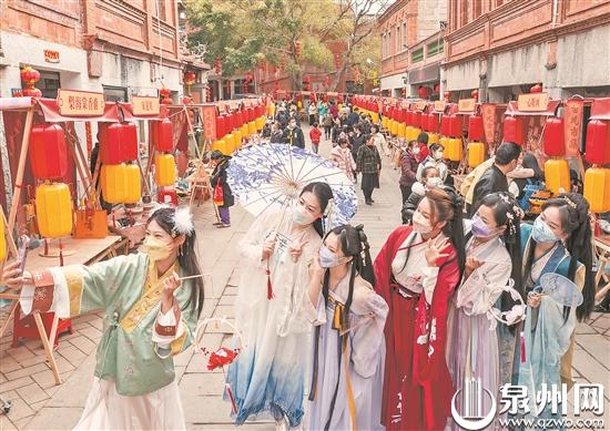 在洛阳桥畔,一曲曲南音让在场群众拍手称赞,一个个古风市集摊位吸引群众前往观赏购买,一个个身着汉服的美女穿梭在人群当中。“这样富有宋元古韵的活动,值得带小孩子来参与。”游客缪女士说,她是外地人,小孩子很喜欢汉服,这次就专门带小孩过来参与体验。而且活动现场还有很多民间的手工艺作品,比如糖画、捏泥人,还有小时候玩到的东西,“体验了一把古代文化,也追忆了童年时光”。