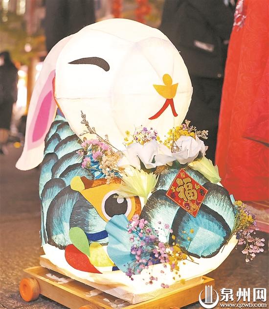 泉州网2月4日讯(记者 陈玲红 庄丽祥 文/图)虽然明天才是元宵节,昨晚的泉州古城已是花灯溢彩,人流如织。天气微寒,但是市民游客逛花灯的热情一点不减,纷纷走上街头提前领略古城浓浓的元宵氛围。在中山路,人潮中更有一只行走的泉州“巨兔”——“幸福兔”造型花灯成为焦点,引得人们纷纷围观拍照。