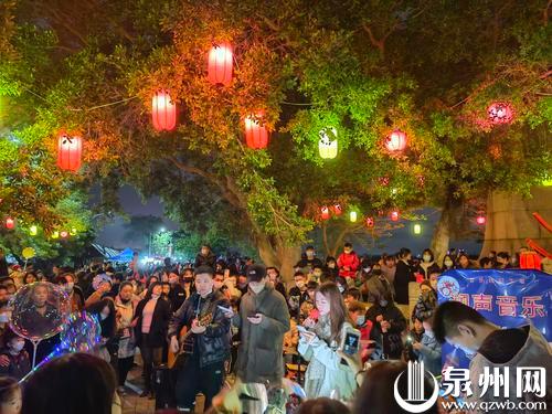 “河边的风在吹着头发飘动,牵着你的手一阵莫名感动……”漫步在洛阳桥上,不时能听到远处传来阵阵悦耳的歌声。走近一看,在桥头的蔡襄石像下,一位年轻的姑娘正深情地演唱着,驻足聆听的市民游客纷纷拿起手机拍照,曲子结束后响起了热烈的掌声。“这是我第一次来洛阳桥游元宵,氛围非常好。”演唱的姑娘名叫杨欣怡,是一名江西人,和父母一起来泉州生活已有3年。从小喜欢音乐的她当晚主动和街头演出的乐队合唱了3首歌,人美声甜的她现场吸引了不少粉丝。