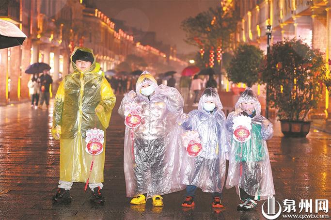 泉州网2月6日讯 (记者王丽虹 魏晓芳 黄墩良 吴志明 王金植)“谁家见月能闲坐,何处闻灯不看来。”昨日,一场绵绵春雨让泉州上演了“雨打上元灯”,阴冷潮湿的天气并没有阻挡人们出门赏灯的脚步,反而营造出别样的风情。平稳的人流少了前几天的拥挤,人们赏灯的脚步更加悠闲从容,将元宵节日的氛围推向高潮。