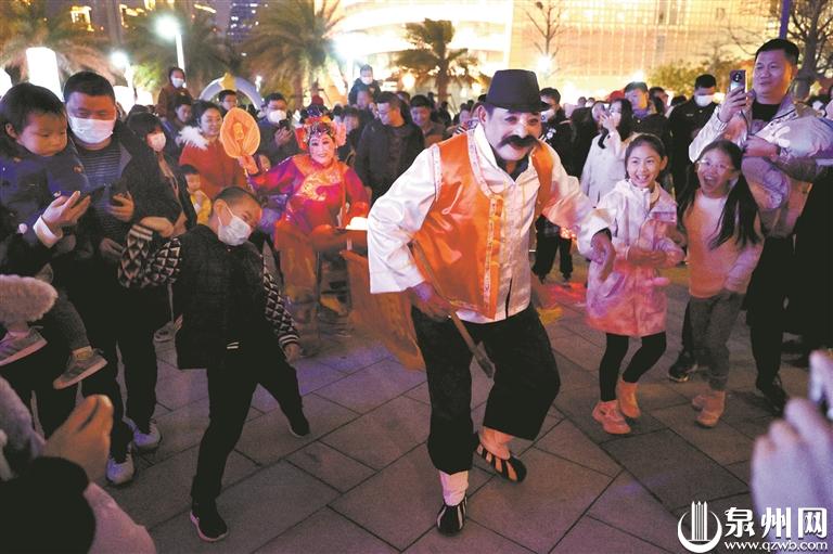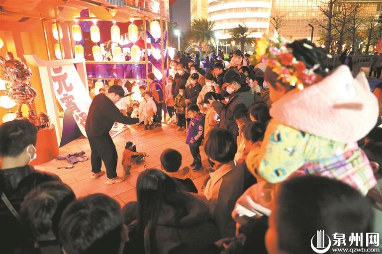 当日下午3时起,外场活动热闹开展。弓夫射箭、投壶、提线木偶、拍胸舞、火鼎公婆、兔儿神财神巡游闹元宵……以“闽韵国潮闹元宵”为主题的游园活动热闹上演。老字号闽南小吃、百变美食铺、文创手作产品、咖啡馆、星空帐篷围炉煮茶、后备厢市集等一应俱全的金花市集,满满的热闹烟火泉州味。