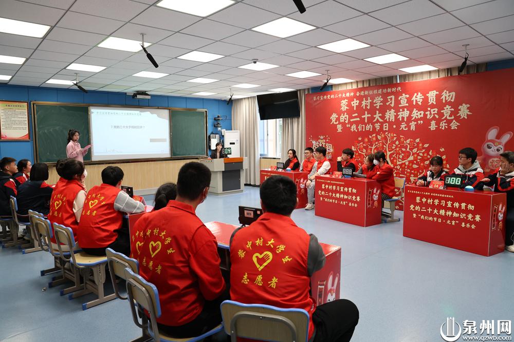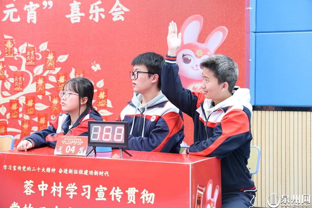 泉州网2月6日讯(记者林达鑫 陈灵 通讯员刘佳 胡婷婷 文/图)元宵佳节,除了游街赏花灯,南安梅山蓉中村的这群中学生和大学生选择这样过——近日,蓉中村党委、村委会与南安国光中学联合举办党的二十大精神知识竞赛暨“我们的节日·元宵”喜乐会,大家在知识竞答中深入学习党的二十大精神、家乡村情、传统文化知识等,寓教于乐,过了个开心又充实的元宵节。