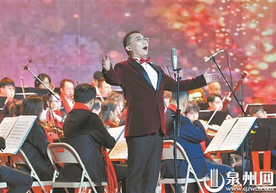 泉州歌舞剧院演员在新春音乐会上引吭高歌。
