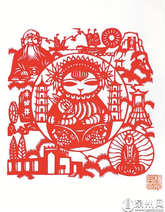 结合非遗更具特色。作为首批国家非物质文化遗产之一,泉州花灯起于唐代、盛于宋元,历史悠久,是南方花灯的代表。泉州市金砖文化传媒有限公司设计的《有福抱》兔年生肖形象系列作品《兔(突)飞猛进》《谈兔(吐)不凡》,就是结合泉州花灯和剪纸两项技艺,原创设计而成。两只兔子一动一静、一文一武,暗含“雄兔脚扑朔,雌兔眼迷离”的意境,且谐音“吐子”,象征“多子多孙、家族兴旺”。与泉州花灯一样,泉州剪纸始于唐而盛于宋。南安民间剪纸艺术家杨民兴创作出三十几幅兔年生肖作品。为了让剪纸更具本土特色,杨民兴在创作中融入许多泉州世遗景点、非遗技艺、民风民俗等。