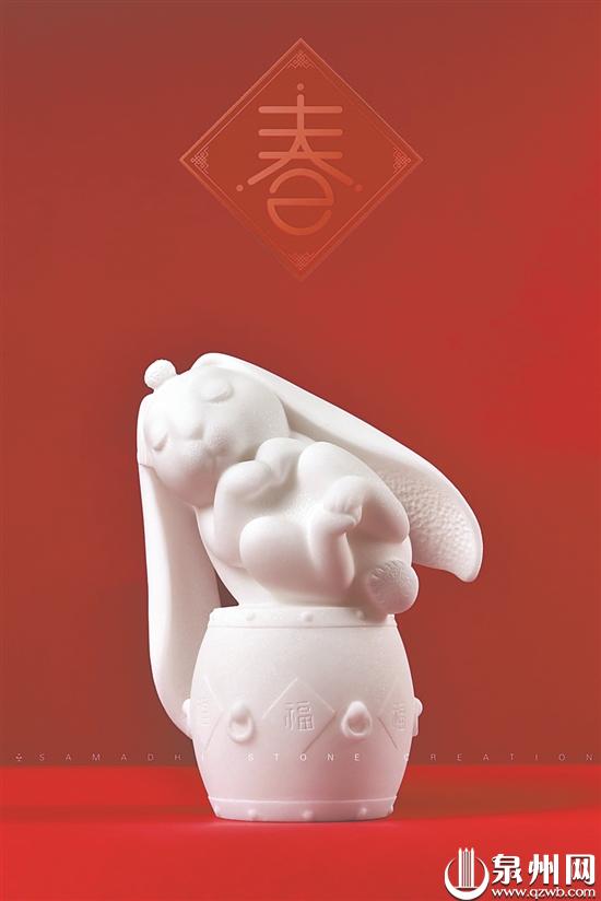 融入新春节庆氛围。在泉州年味渐浓的春节图景中,“福兔”文创成了一道靓丽风景,有用泉州人耳熟能详的闽南语“好势”(意即“好的、一切都好”)为寓意的《好势兔》家居摆件,还有从北京市最具代表性的非物质文化遗产之一“兔儿爷”获得灵感创作出的陶瓷作品《兔儿爷》。“福兔”带着美好寓意走进群众身边,把迎春纳“福”的美好祝愿传递到每一个人。