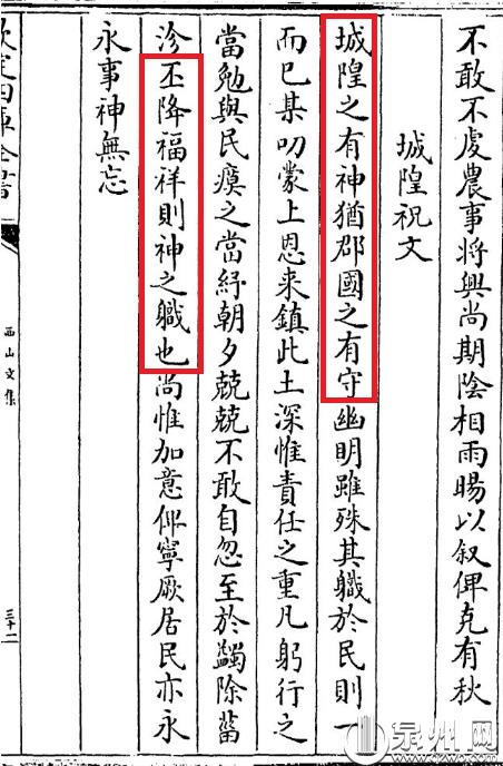 《西山文集·卷52·城隍祝文》南宋泉州知州真德秀在遇旱时为民求城隍祝文(林建强 提供)