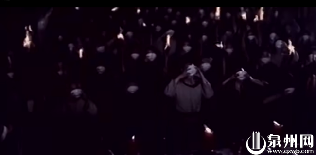 电影截图。20世纪80年代一部反映爱国志士同贩卖华工的帝国主义分子进行殊死搏斗的电影《海囚》在小城隍取景,泉州六中师生和居民充当群众演员。据附近居民尤建人先生回忆,他有位朋友也在该剧当群演,戏酬一人5角钱,拍的是摔碗宣誓的场景。