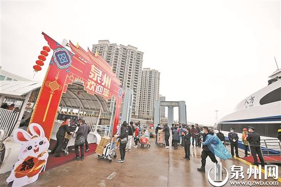泉州网2月11日讯 (记者 蔡紫旻 郭雅莹 黄耿煌 通讯员 林应权 傅央央 王文 毛室俊)昨日上午9时37分,载着17名旅客的“八方”客轮起航,从位于泉州南安石井的泉金客运码头出发,前往金门水头港;中午12时30分左右,金门驶来的“八方”客轮,载着30名旅客抵达石井。至此,中断整整三年的泉州至金门“小三通”客运航线恢复通航,顺利完成首个往返航班,达成了一场等待已久的双向奔赴。