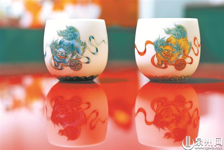 “‘狮文化’在雕塑等艺术载体上表现较多,在茶具上应用并不多见。我这次创作了两套不同风格的系列瑞狮茶杯,也是一次全新的尝试。”在德化指尖匠陶瓷研究所展厅,福建省陶瓷艺术大师王代丁笑着说。