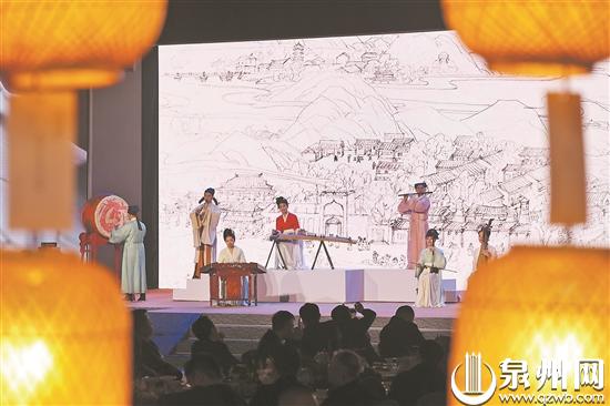 除了兼收闽南名菜、集山珍海味于一席的菜品,“宋元海丝宴”还融合了宴席与仿古的宋元器皿、场景、乐曲、诗词等沉浸式元素,鲜活再现了富有宋元美学特征的宴席场景,展现了宋元时期世界海洋商贸中心独特的美食文化,进一步丰富了泉州世界文化遗产的内涵。