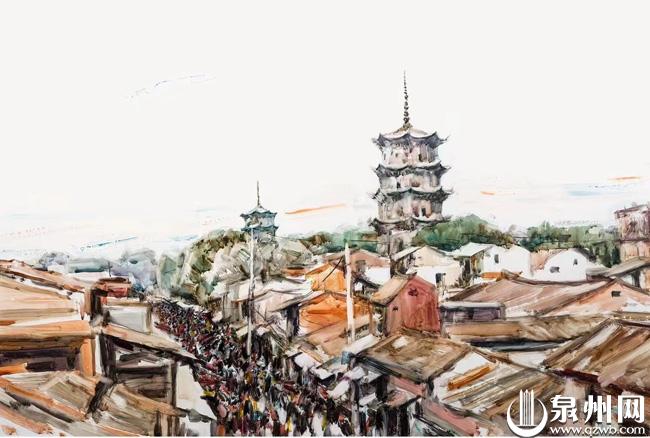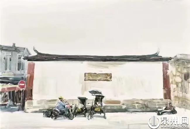陈阳辉的水彩画《开元寺紫云屏》。