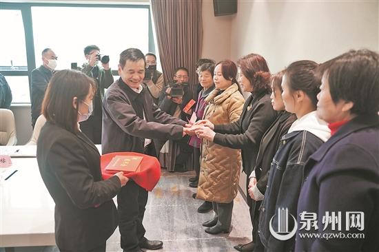 泉州网3月1日讯(记者陈祥木 林福龙 通讯员杨晓民 陈靖涵 文/图)为进一步倡导见义勇为,弘扬社会正气,传递社会正能量,在全社会营造关爱女性见义勇为英模的浓厚氛围,2月28日上午,福建省见义勇为基金会一行在泉州组织开展“喜迎国际妇女节·省见义勇为女英雄模范(先进个人)慰问座谈会”,对王燕茹、杨思香等9位女英模进行慰问。