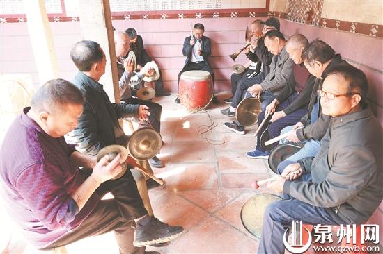 老人聚在一起敲锣打鼓、吹拉弹唱。