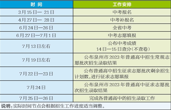 2023年泉州市中考中招工作时间安排