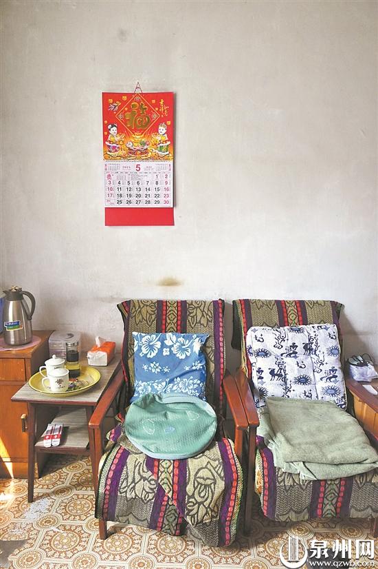 罗浪家的沙发用了几十年,弹簧坏了,坐着很不舒服,他用靠垫垫在上面,铺个毛巾继续用。