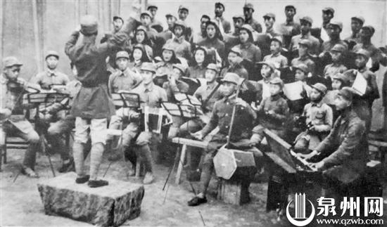 1949年10月1日下午3时,天安门前隆重举行中华人民共和国开国大典,毛主席郑重宣告“中华人民共和国中央人民政府今天成立了!”随后,伴随雄壮激昂的代国歌《义勇军进行曲》,五星红旗冉冉升起。第一次在世界人民面前奏响国歌的,是由近200人组成的开国大典联合军乐团,担任总指挥的是年仅29岁的泉州市德化县人——罗浪。