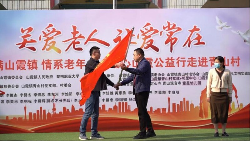当天,“爱满山霞镇,情系老年人——暖心山霞公益行”活动旗帜被郑重交到青山村支部书记手中,活动正式拉开帷幕。志愿者们随行到村特困户和低保户中赠送慰问礼包,组织和协助老人家们到现场参与义诊、插花等活动,为老人们过集体生日会,关爱、温暖在现场传递。