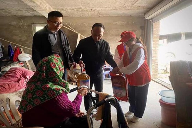 志愿者随行入户赠送慰问物资(图片来源:黎明职业大学)