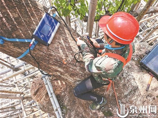 “和专业养护团队合作,能定期开展专业的古树名木养护工作,在古树名木遭受病虫或自然灾害时应对起来也更高效。”惠安县营林技术指导站站长林竑斌介绍,县财政每年拨付古树名木管养专项资金20万元聘请专业养护团队,改变以往由属地责任人养护的做法,养护效果更显著。同时,通过多方位宣传古树名木保护,强化行政监管力度,发动社会力量参与巡查等方式,提升古树名木的保护力度。