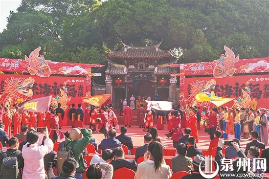 宋代,泉州海外交通昌盛。从北宋到南宋前期,祭海是在法石的真武庙举行。这里靠近江口码头,又处在古城向东通往后渚港的干道沿线,便于出海商人的祭拜。明万历《泉州府志》载:“玄武庙在郡城东南石头山,庙枕山漱海,人烟辏集其下,宋时为郡守望祭海神之所。”
