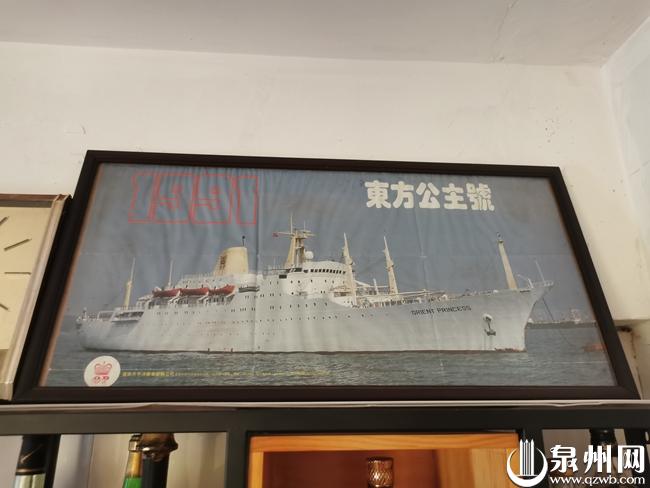 黄家摆放着1991年“东方公主”号豪华游轮照片。