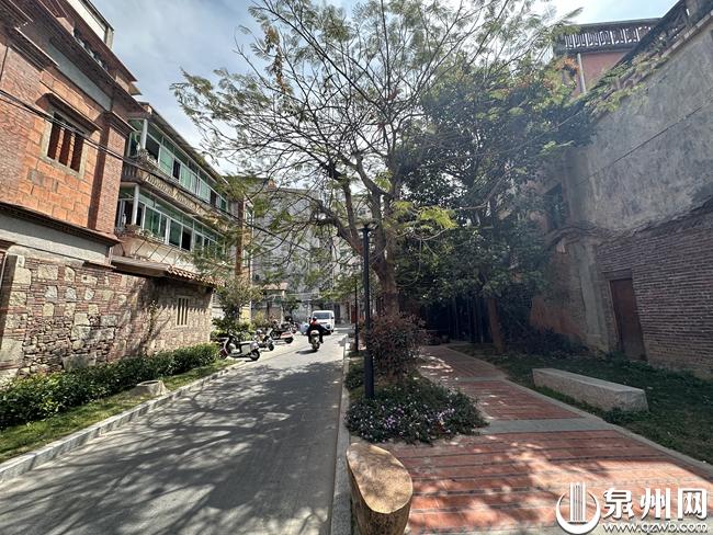 “出砖入石”墙面上的“濠沟墘”标志正对着层层交错的灰白色旧石,和“闽南红”砖石交相辉映。(市文旅集团供图)