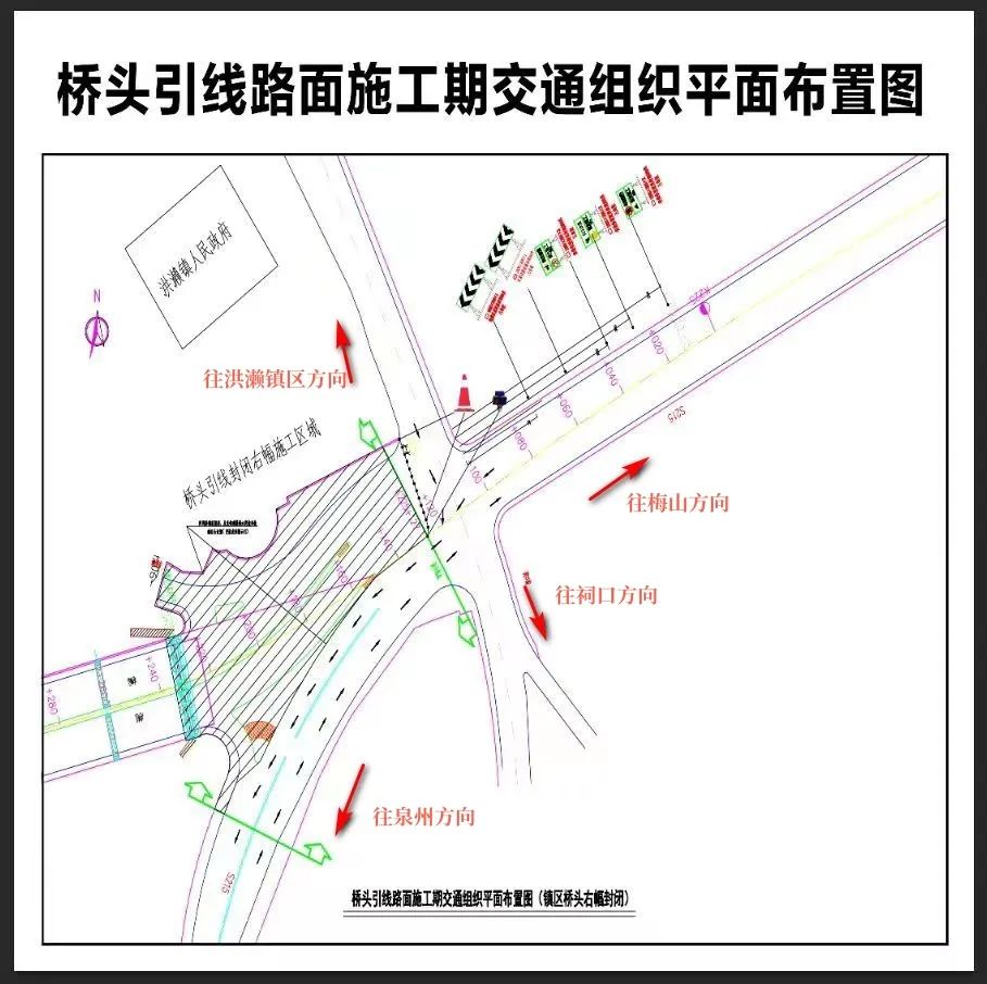 洪濑大桥主体工程已完成,现需施工洪濑大桥镇区连接线,为确保施工作业及过往车辆、行人安全,按照《中华人民共和国道路交通安全法》第三十九条规定,决定对省道213线K225+127~K225+230段(即红绿灯至来福隆超市段)进行封闭交通管制,过境车辆、行人提前选择路线绕行,自觉按照交通标志引导或现场工作人员指挥通行,给您带来的出行不便,敬请给予理解和支持。