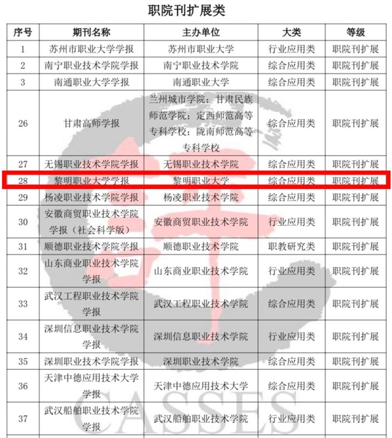 泉州网3月20日讯(记者洪荣堆)3月15日,中国社会科学评价研究院(CASSES)发布《中国职业高等院校期刊AMI综合评价报告(2022)》,《黎明职业大学学报》脱颖而出,入选中国职业高等院校期刊AMI综合评价“职院刊扩展刊”,名列第28位。