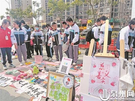 泉州网3月24日讯 (记者郭芳蓉 魏晓芳 通讯员詹建忠 文/图)正值学雷锋月,近日,泉州七中江南校区、泉州市新华中心小学的师生们相约前往新天城市广场参加爱心义卖主题志愿服务活动。不止师生,广大社区居民、学生家长也纷纷热情参与,为爱心助力。