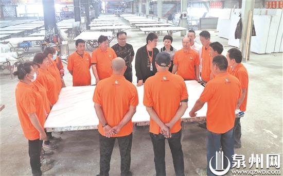 当天,水头镇宣传委员、统战委员颜永祥,南安华大石材产业技术研究院副教授王福增一起走进弘一大理石加工基地、艾斯亚特工程加工中心、艾斯亚特花岗岩基地等三家企业生产车间一线,开展党的二十大精神微宣讲。宣讲以石板当讲台、车间为课堂,将“小板凳课堂”搬进企业,将党的二十大精神送到车间、送到班组、送到一线工人身边。