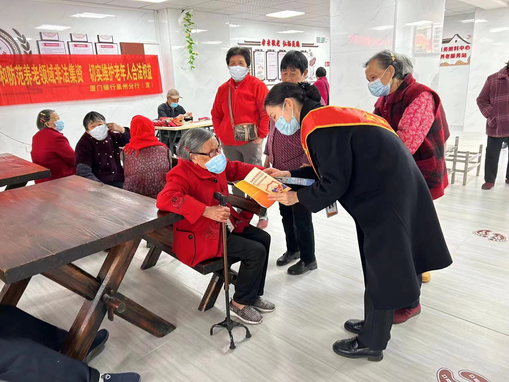 厦门银行泉州分行走进鲤城区坂头社区开展老人会共建活动,现场通过发放宣传折页及以案说险的方式,重点针对保本高息、投资养老、电信网络诈骗等金融诈骗手段,开展风险提示和教育宣传,旨在帮助老年消费者树立理性投资观念,远离欺诈、误导、非法集资等非法金融活动侵害。