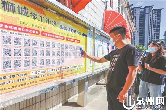 村民在邻里中心招聘市集点扫码登记求职 (石狮市委组织部供图)
