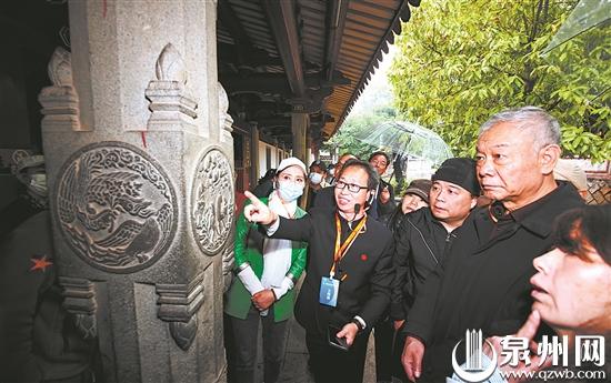 开元寺内古印度教石柱上,体现中印文化融合的石刻图案让参会嘉宾们充满兴趣。