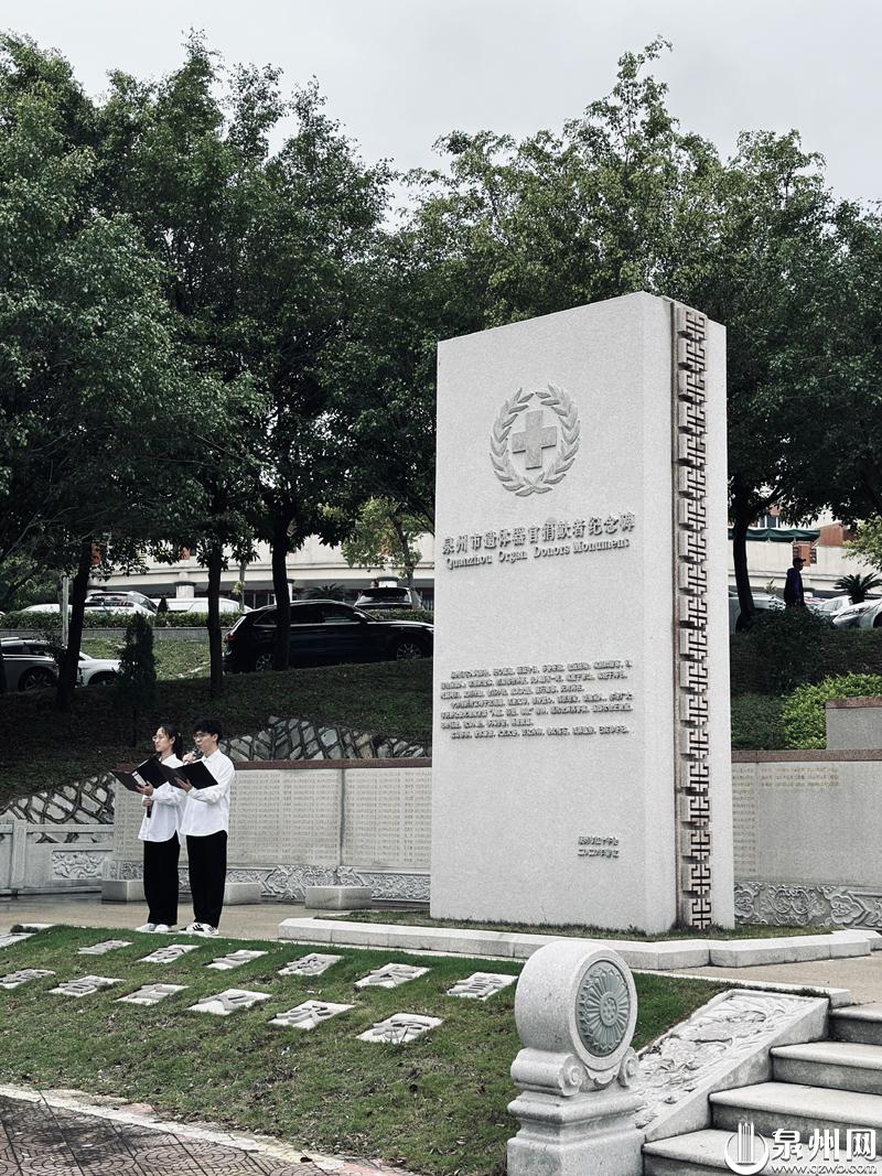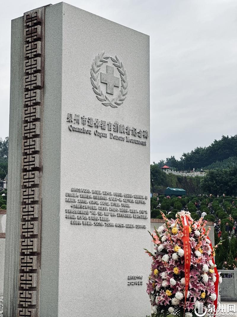 在泉州市遗体器官捐献者纪念园内,泉州市遗体器官捐献者纪念碑在绿树环绕中安然伫立,两片次碑上,镌刻着百余名捐献者们的姓名、出生年月和捐献时间,记录着他们传递生命大爱的义举;正面台阶前,“生命之树长青,捐者仁心永存”两行字,深切表达了对捐献者的崇高敬意和深情缅怀。