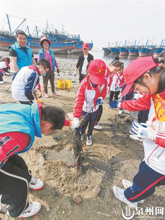 泉州网4月4日讯 (记者魏晓芳 通讯员蔡加渐 文/图)今年4月是第35个爱国卫生月。4月2日下午,石狮市祥芝美丽海岸志愿者协会联合石狮市第二实验小学407中队开展了以“共建清洁美丽世界,‘海’好有你”为主题的净滩行动,以实际行动保护海滩生态环境。