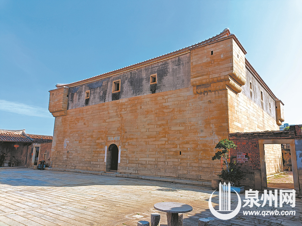 怎么形容泉港前黄村的黄素石楼?这石楼屹立于村中央,由花岗岩条石砌成,四四方方,长宽各20.8米,高9.3米,上覆方形平顶,怎么看都像是一个巨大的新鲜出炉的上乘“法式奶酪吐司”。瞧,那焦黄中略带糙点的“面壳”,有点软香酥脆、柔中带刚的感觉,让我相信这一定是用村里“纯粮”工艺打造的。远眺已是香气诱人,近观更是涎水欲滴。据说在俄罗斯,是以面包和盐作为迎接客人的最高礼仪。我看在前黄村,这道“石楼美味”,同样是宴宾的至高礼遇。