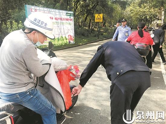 昨日上午9时许,在泉州市区齐云路,三三两两的群众或步行或骑电动车前往清源山扫墓。