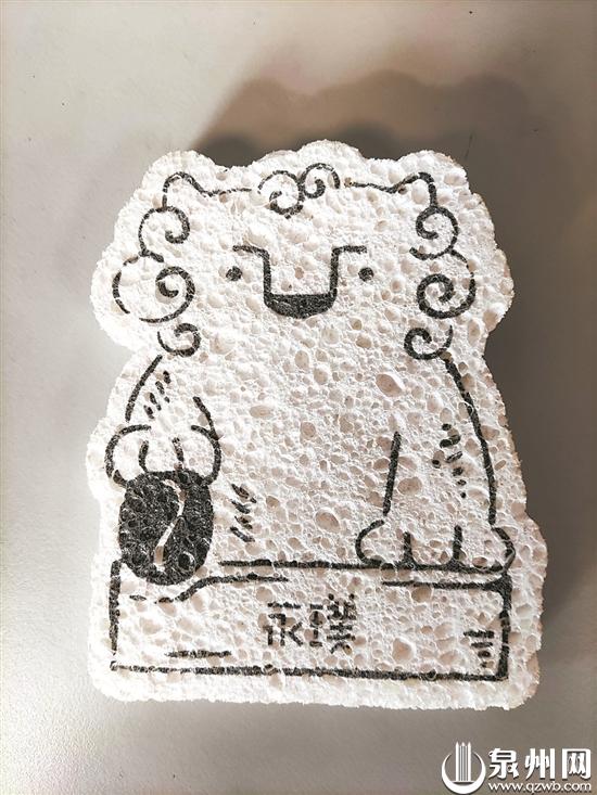 简笔画狮形清洁棉(王世阳 摄)