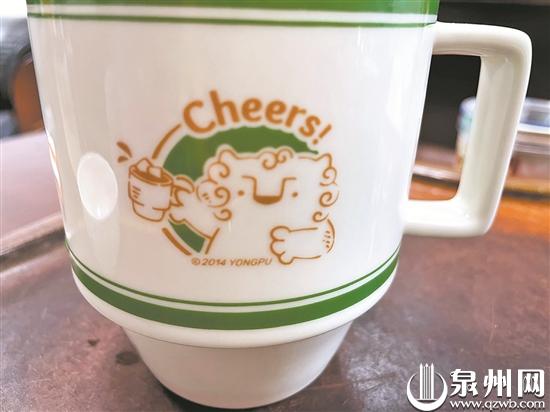 马克杯上的狮子手拿马克杯,做出干杯的姿势,活灵活现。