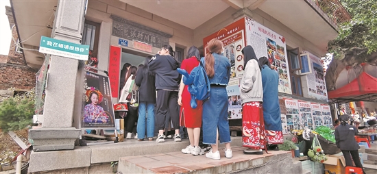 来蟳埔体验头饰簪花围的市民游客非常多。近日,江苏的张先生特地带妻女前来体验,他也趁机体验下男版的头饰簪花围。“既然来了,就体验下,挺有意思的,很特别,很漂亮。”他说,看到明星的体验后,觉得很好看,就带妻女一起来,泉州的文化浓厚,古厝也很漂亮。