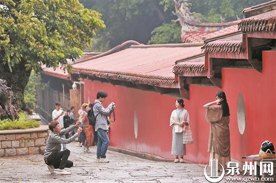 泉州开元寺的网红墙吸引来自各地的游客 (陈英杰 摄)