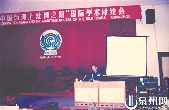 1991年2月,陈泗东在联合国教科文组织海上丝绸之路国际学术讨论会上宣读论文。