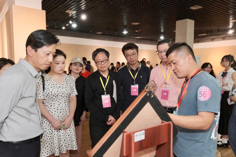 终评评审专家组观摩入围作品实物,入围选手现场陈述。(图片来源:大赛组委会)
