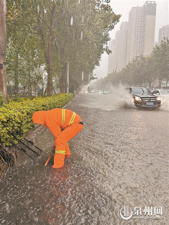 泉州网4月19日讯(记者张晓明 通讯员张明 文/图)昨日上午,晋江市城建市政公司的应急保障队伍在暴雨中奋战,主要消除暴雨过程中雨水蓖堵塞、低洼处积水、小水道等给市民出行带来的安全隐患。
