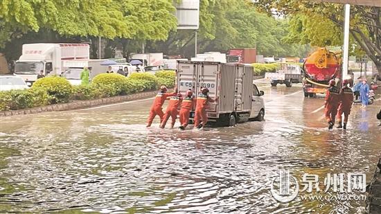 泉州网4月19日讯 (记者陈明华 通讯员黄宏伟 王礼梁 张金秋 黄阿兰 文/图)昨日,泉州多地突降暴雨,鲤城、丰泽、晋江、南安等地部分低洼路段积水严重,不少车辆被困积水中、有的地方下水道被堵……接到求助后,市消防救援支队立即调派辖区救援力量,赶赴各地处置险情。