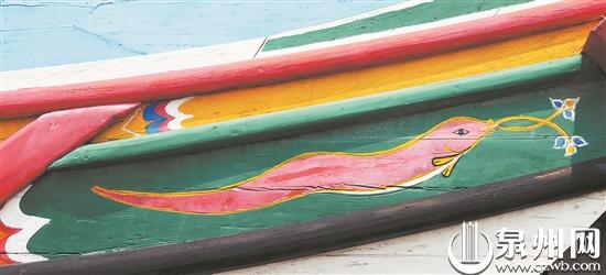 现在仍有不少玉前村民在从事福船、渔船的营造工作。我们在东园镇下埯村霞东宫附近的海边船工坊中,遇到正在忙着造船的玉前村人,询问之下方才知道他们在造的是“大排福船”。这是一种依照古海丝之路运输船的形体仿造而来的木帆船。这种福船的建造十分讲究,外壳用进口红木,内横料、排骨用的是大樟木,船长8.5米,宽2.5米,深为0.85米。造船的工具甚多,有斧头、凿子、刨刀、钻木、钉送、钉拔、掘斧、墨斗、曲尺、刮刀、灰刮板等等。造船工序同样很多,最重要的是“竖龙骨”“安龙目”“钉头巾”等工序。船体外侧有闽南独特的海船彩绘,帆张绳路也是依古制而作。据说这种大排福船动力足,不惧风浪。谢氏造船人还介绍称:“一般我们把老船匠打造的海船称为‘正打船’,这种船的船身上会绘制一条‘挂须’(类似长胡须的泥鳅)。海边渔民一眼就能认出这是老船匠打造的,也就会安心使用了。”