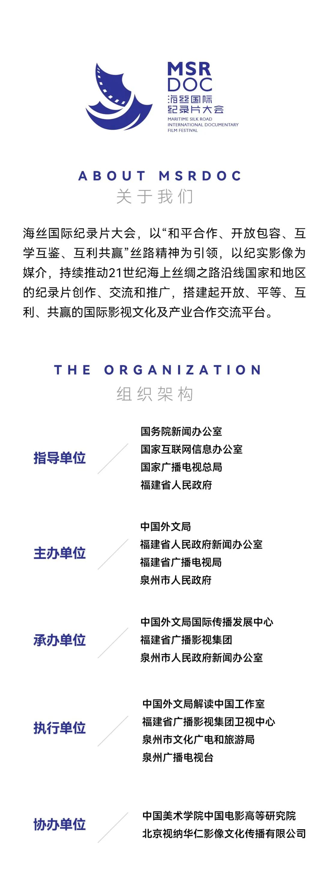 2023年,恰逢共同建设21世纪“海上丝绸之路”倡议提出十周年。为进一步增进海丝沿线国家和地区文明交流互鉴,由国务院新闻办公室、国家互联网信息办公室、国家广播电视总局、福建省人民政府指导,中国外文局、福建省政府新闻办、福建省广播电视局、泉州市人民政府主办,中国外文局国际传播发展中心、福建省广播影视集团、中共泉州市委宣传部承办的首届海丝国际纪录片大会,将于7月3日-7月6日在世遗名城泉州举办。