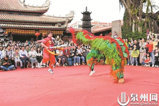 泉州网5月1日讯 (记者 王金植)提线木偶、少林五祖拳、南音、梨园戏、高甲戏……这个“五一”,众多非物质文化遗产传承项目走进泉州各个景区进行展演,为八方游客展现海丝名城的优美风韵和世遗之城的独特魅力,增添了浓厚的节日氛围。