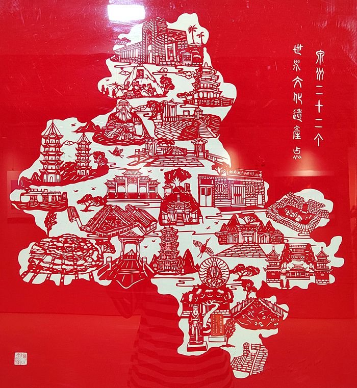 全景式展现泉州22个世界文化遗产点的刻纸,描绘泉州老城区街巷市井生活的油画,表现惠女昂扬向上精神风貌的木雕……这些主题鲜明、形式丰富的作品全部出自泉州艺术家之手。